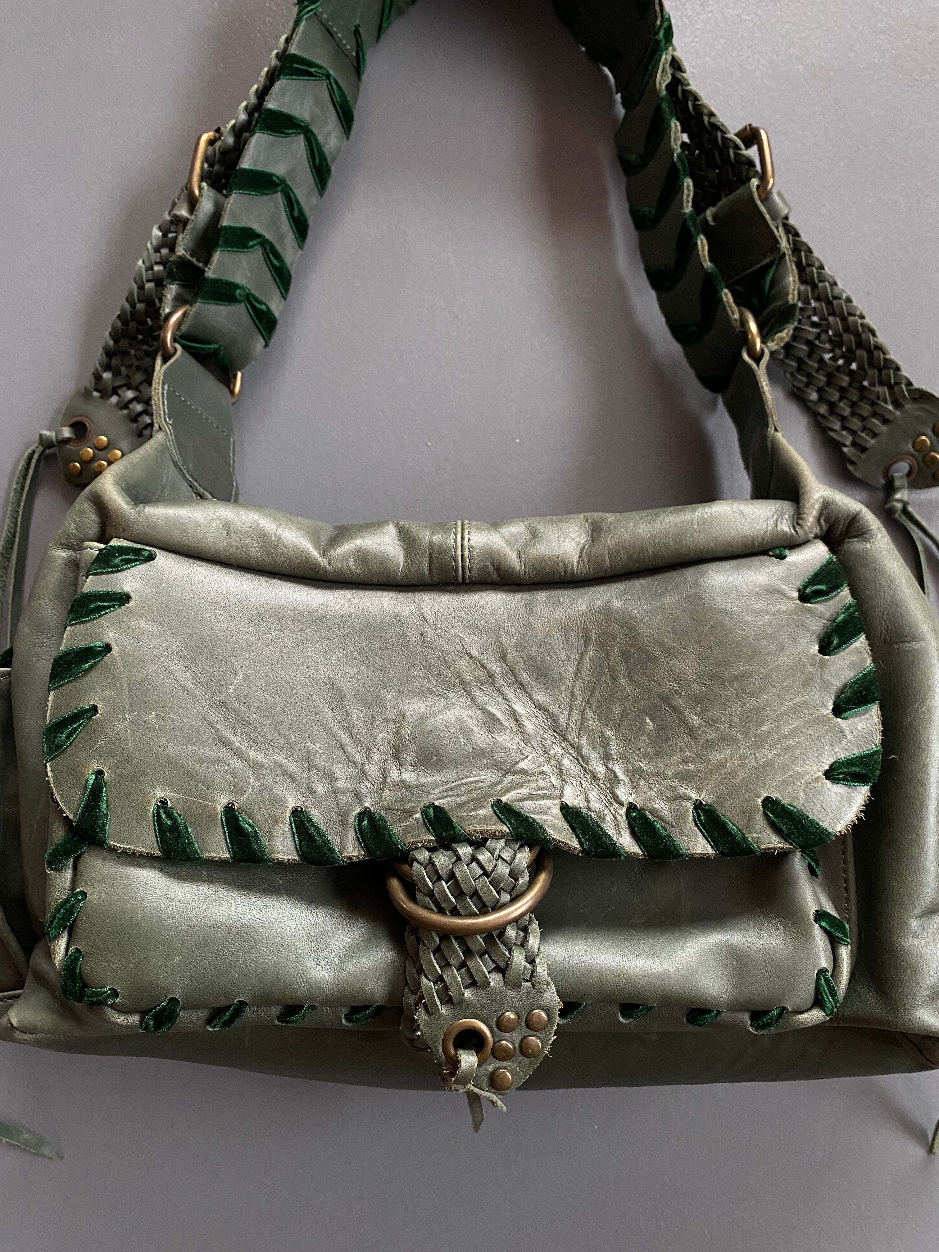 khaki leather shoulder bag